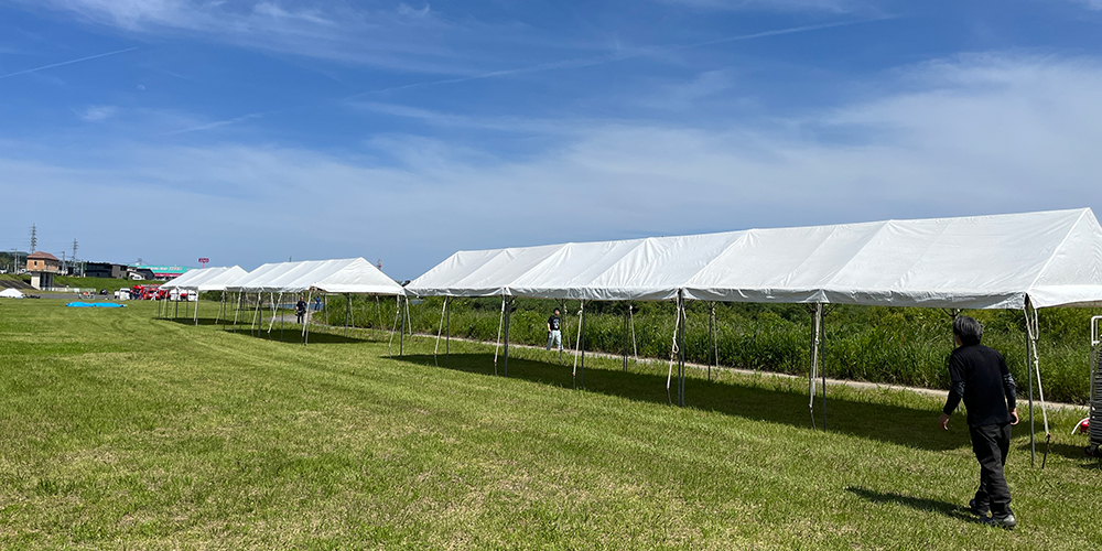 テント・テーブル・椅子・ステージなど各種イベント用品のレンタルから、会場設営・撤去までワンストップで対応いたします。