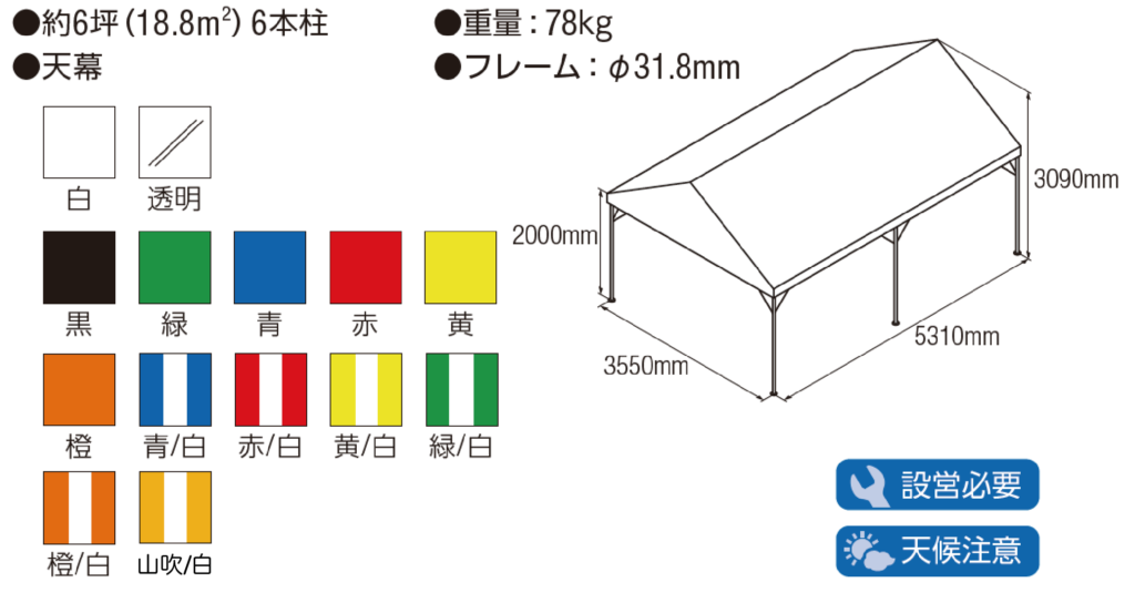 商品詳細 集会用テント 2K×3K 品番 6012302100 レンタル価格(税込み) 2泊3日 12,100円 カテゴリ テント|テント 数量 カートに入れる この商品について問い合わせる レンタルガイド